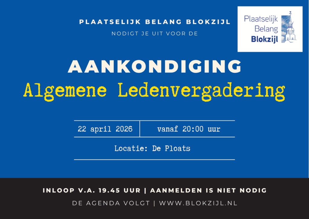 ALVG Plaatselijk Belang 22 april 2026 20:00 - 22:00 De Ploats Groenestraat 18, Blokzijl, Overijssel, 8356DB, + Google Maps Plaatselijk Belang Blokzijl werkgroepcommunicatie@blokzijl.nl Bekijk de Organizer-websiteToevoegen aan agendaGoogle kalenderApple Agenda.ics-bestand exporterenOutlookLiveOutlook 360